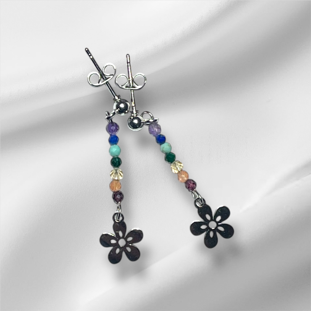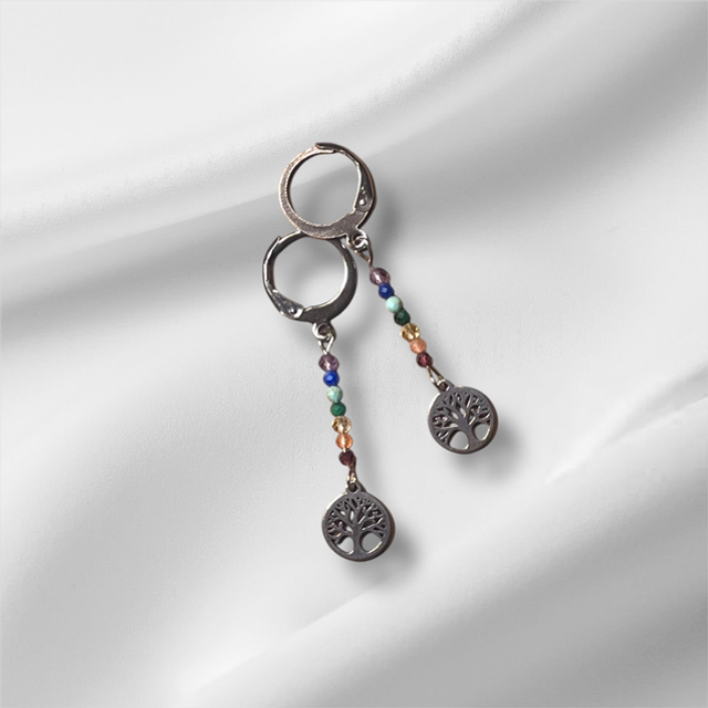 Very cute chakra earrings on stainless steel ear wires. Available with flower or Tree of Life charms