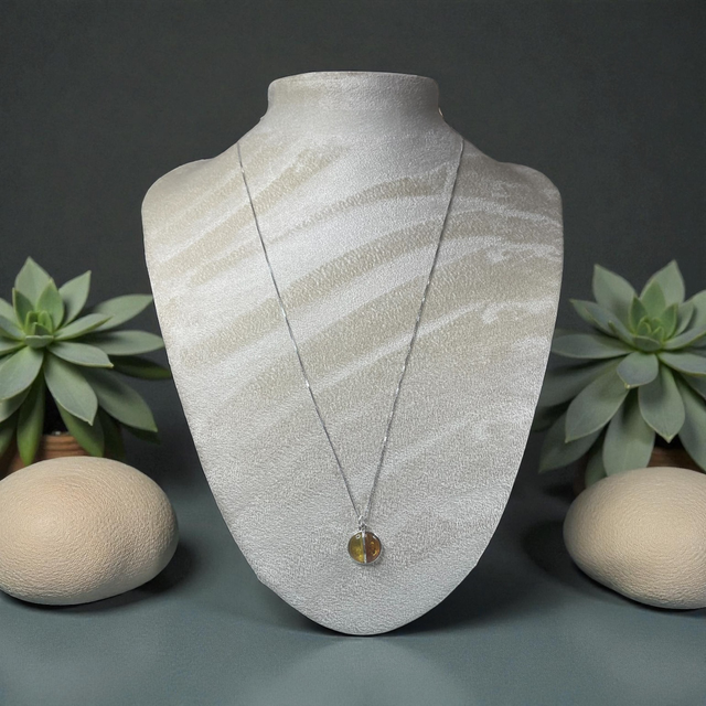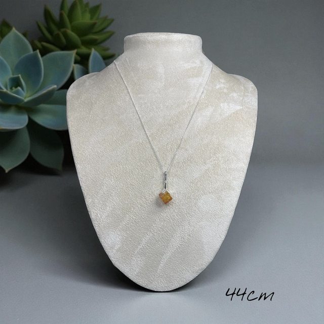 Amber and sterling silver pendant necklace