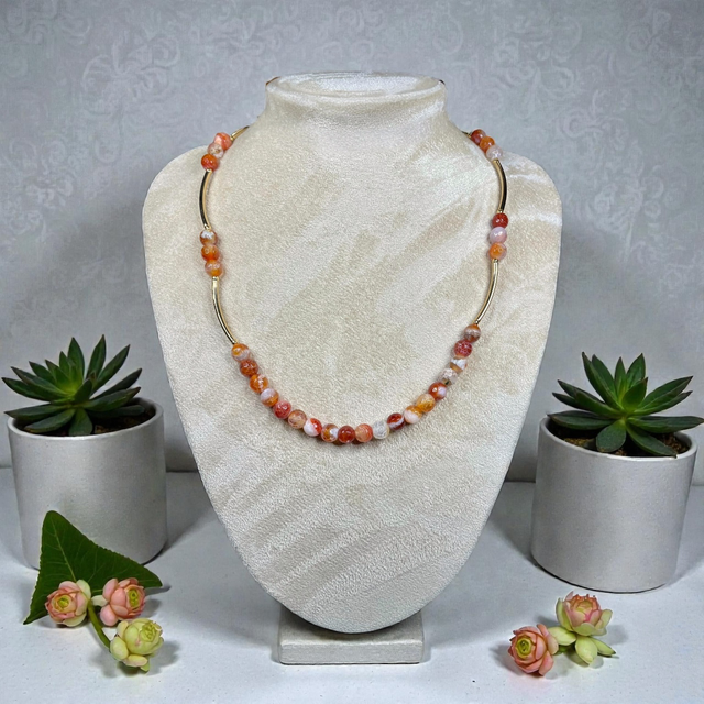 Fire agate gemstone necklace